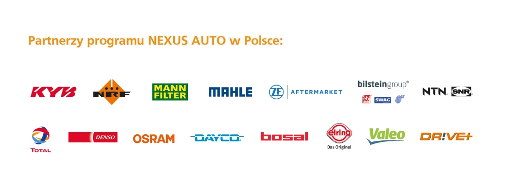 - Wsparcie producentów: KYB, NRF, MAHLE, ZF AFTERMARKET, bilsteingroup, NTN-SNR, TOTAL, DENSO, OSRAM, DAYCO i Mann-Filter, Bosal, Elring, Valeo i Drive+.